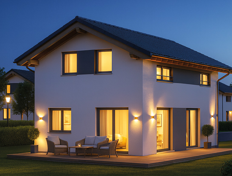 *Sowohl der Regnauer Standard-Kalkulation als auch den Aktionspreisen liegt das umfassende Leistungspaket der Regnauer Bauleistungs- & Ausstattungsbeschreibung zu Grunde. Alle Hauspreise ab Oberkante Kellerrohdecke, gültig für das Liefergebiet der Regnauer Fertigbau GmbH & Co. KG bis zu einer charakteristischen Schneelast von 2,5 kN/m2. Frischluft- Wärmetechnik ohne Kühlfunktion. Abbildungen mit Sonderausstattung. Alle Preisvorteile errechnen sich aus der Differenz zwischen Regnauer Standard- Kalkulation und Aktionspreis sowie dem Wert der Zugabe eines der zwei Gratis-Gutscheine nach unverbindlicher Preisempfehlung des jeweiligen Herstellers und nach Vorgabe von Regnauer. Angebot nicht mit anderen Regnauer Aktionen kombinierbar. Eine Barauszahlung des Gutscheins im Wert von 10.000 € ist nicht möglich. Bei Entscheidung für das Smart-Home-Upgrade wird das Smart Home-Paket je nach Umfang individuell kalkuliert und der Gutschein im Wert von 10.000 € angerechnet. Nutzen Sie auch die Freiheit, Individualisierungen zur Umsetzung eigener Wünsche vorzunehmen. Welchen Einfluss das auf Ihren Vorzugspreis hat, sagt Ihnen Ihr Regnauer Berater.