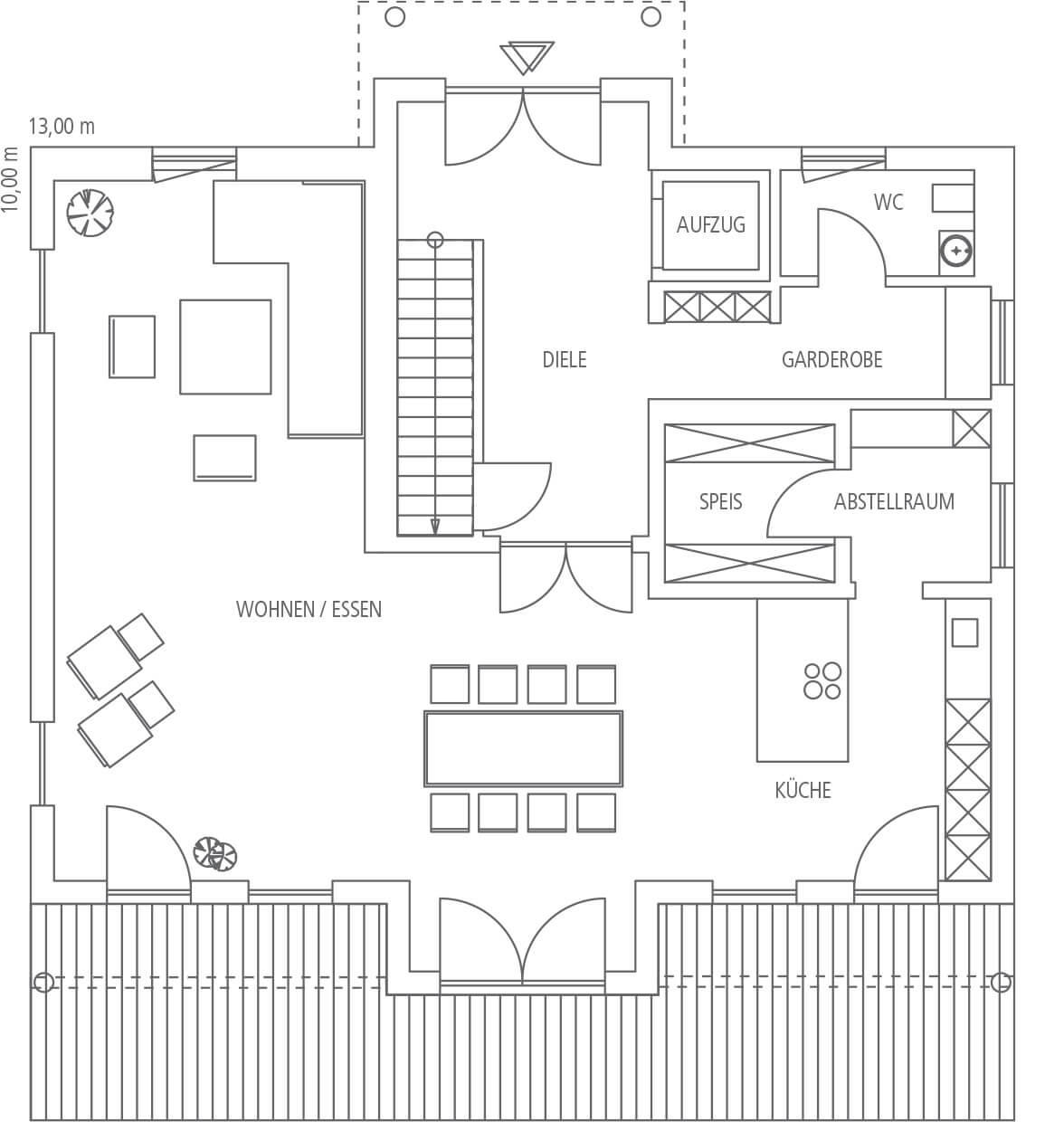 Die Architektur setzt Signale beim Baukörper, der Fassadengestaltung, der Fenstergrafik, einer repräsentativen Eingangssituation sowie der Gartenseite, die Aufenthaltsqualität in Hülle und Fülle bereithält.