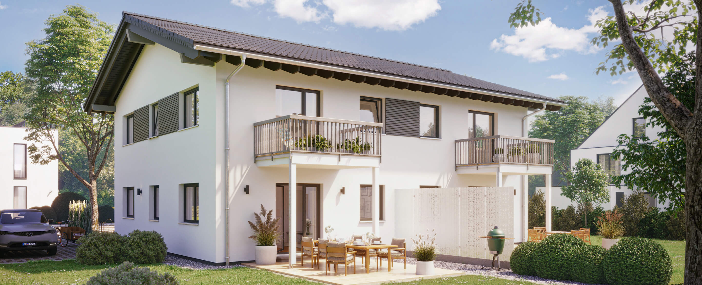 Vitaler Wohnraum auf dem Land: Die Bauherren von Haus Ebersberg vermieten alle vier Wohnungen und ermöglichen so modernes, wohngesundes und energieeffizientes Wohnen für ein bis zwei Personen je Einheit. Die besonderen Ansprüche an Nachhaltigkeit und architektonische Planung waren ausschlaggebend für die Entscheidung, das Mehrparteienhaus von Regnauer entwerfen und bauen zu lassen.