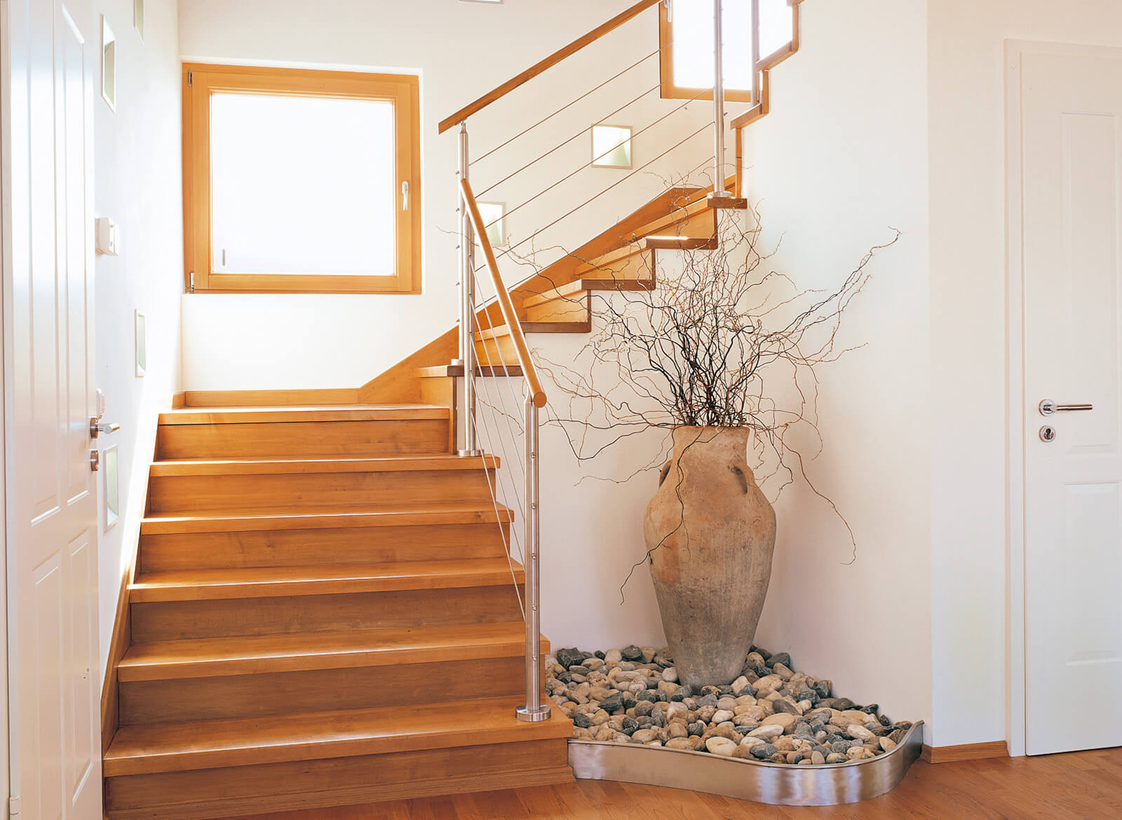Spielerisch aufgenommen werden diese Elemente von der Eckterrasse und im überdachten Hauseingang. Im Inneren sorgt die große Wohnküche für mediterranes Lebensgefühl.