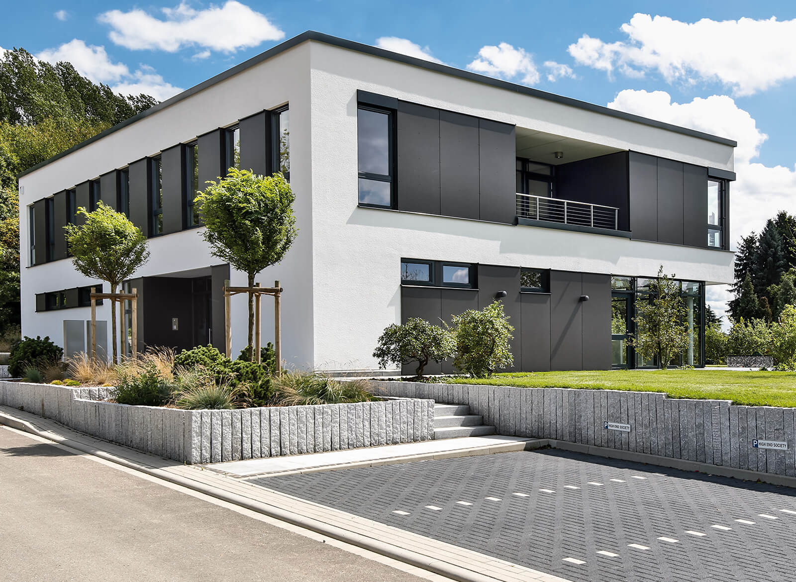 Regnauer plante und baute in bewährter Vorgehensweise – entstanden ist ein Objekt, das die Ansprüche des Unternehmens an Modernität und Innovationsgeist beeindruckend zur Geltung bringt. Besonders wichtig waren dem Bauherrn Nachhaltigkeit, Energieeffizienz und eine optimale Raumakustik. Für Repräsentation, Image und Professionalität steht das Erdgeschoss: Empfangs- und Infobereich gehen über in eine Business Lounge; der insgesamt 60 m2 große Konferenzraum lässt sich durch eine mobile Trennwand flexibel umgestalten.