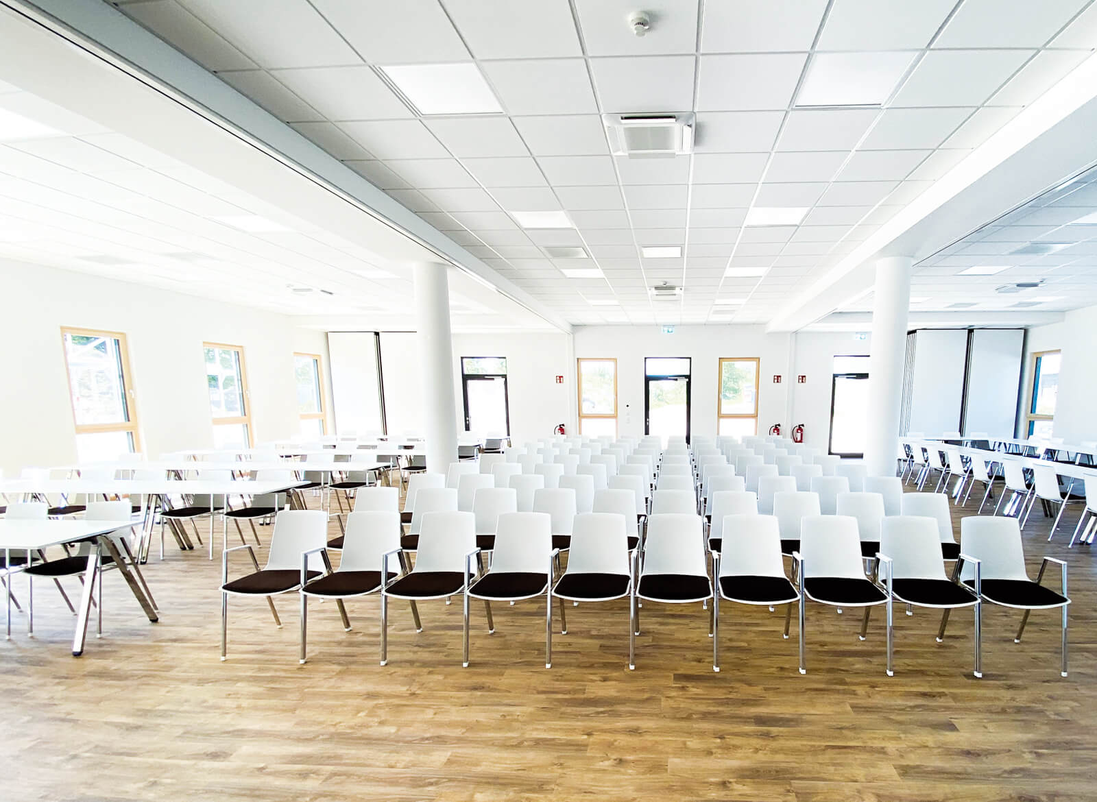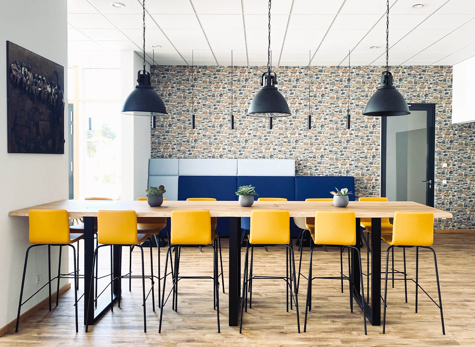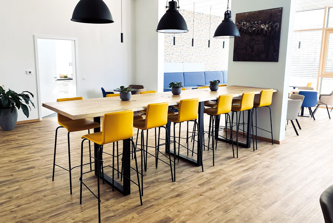 Die Arbeitswelten, die SWS selbst nutzt, verbinden Möglichkeiten zum konzentrierten, vertraulichen Arbeiten sowohl mit Team-Arbeitsplätzen wie der „Thinking Lounge“, einer „Creativity-Fitness-Area“ mit „Meet and Move“-Bereich und einem „Work-Café“ als auch mit einem großen Seminarbereich.